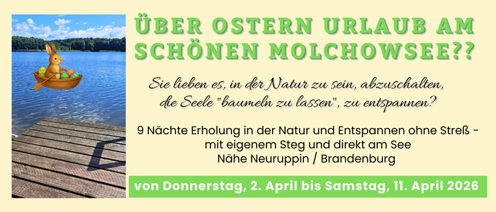 Schon unseren Urgroßvater Driesel zog es vor vielen Jahren aus Neuruppin hinaus an den schönen Molchowsee, wo er sich in seiner Villa („Drieselsruh“) niederließ. Durch die Wirren des Krieges existiert diese leider nicht mehr, aber die Liebe für diese schöne Region ist geblieben und unser Ferienhaus in einer wunderschönen Gegend.